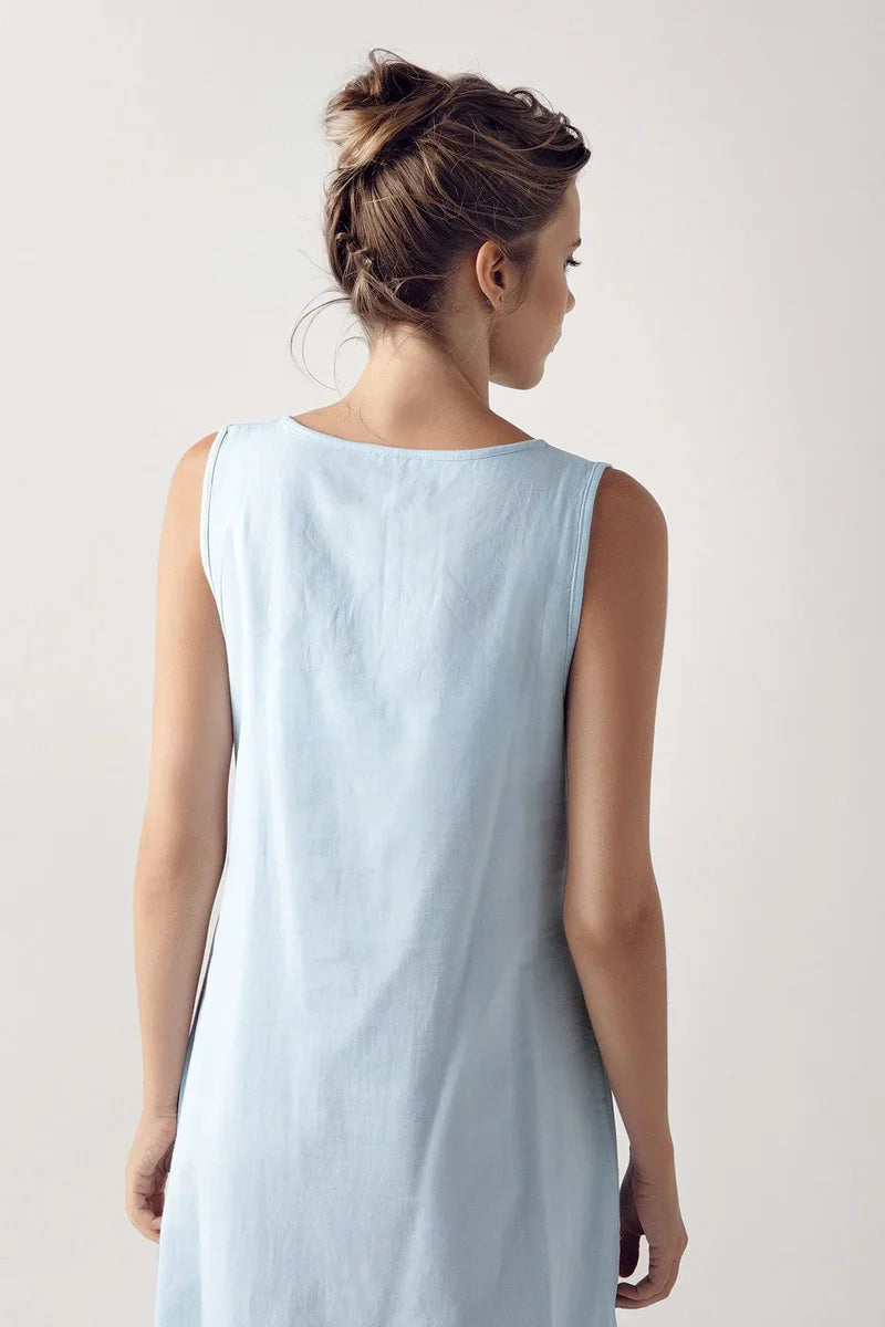 Short-Sleeve Buttoned Lace-Trimmed Woven 100% Cotton Blue Maternity Nightgown Robe Set